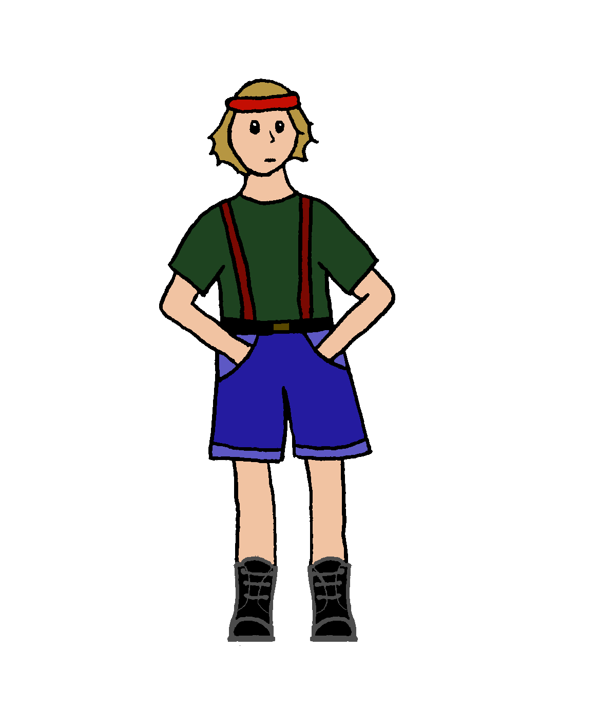Próbowałam zrobić hmm... komiks? Chyba coś takiego. No i to miała (ma) być postać, tylko chyba trochu nie wyszło. Wydaje mi się, że jest trochę za szeroki i nie powinien być aż tak bardzo przechylony w lewo. No i te kieszenie jakieś dziwne- chyba za bardzo z przodu. I nogi ma krzywe. Jakieś inne mankamenty?