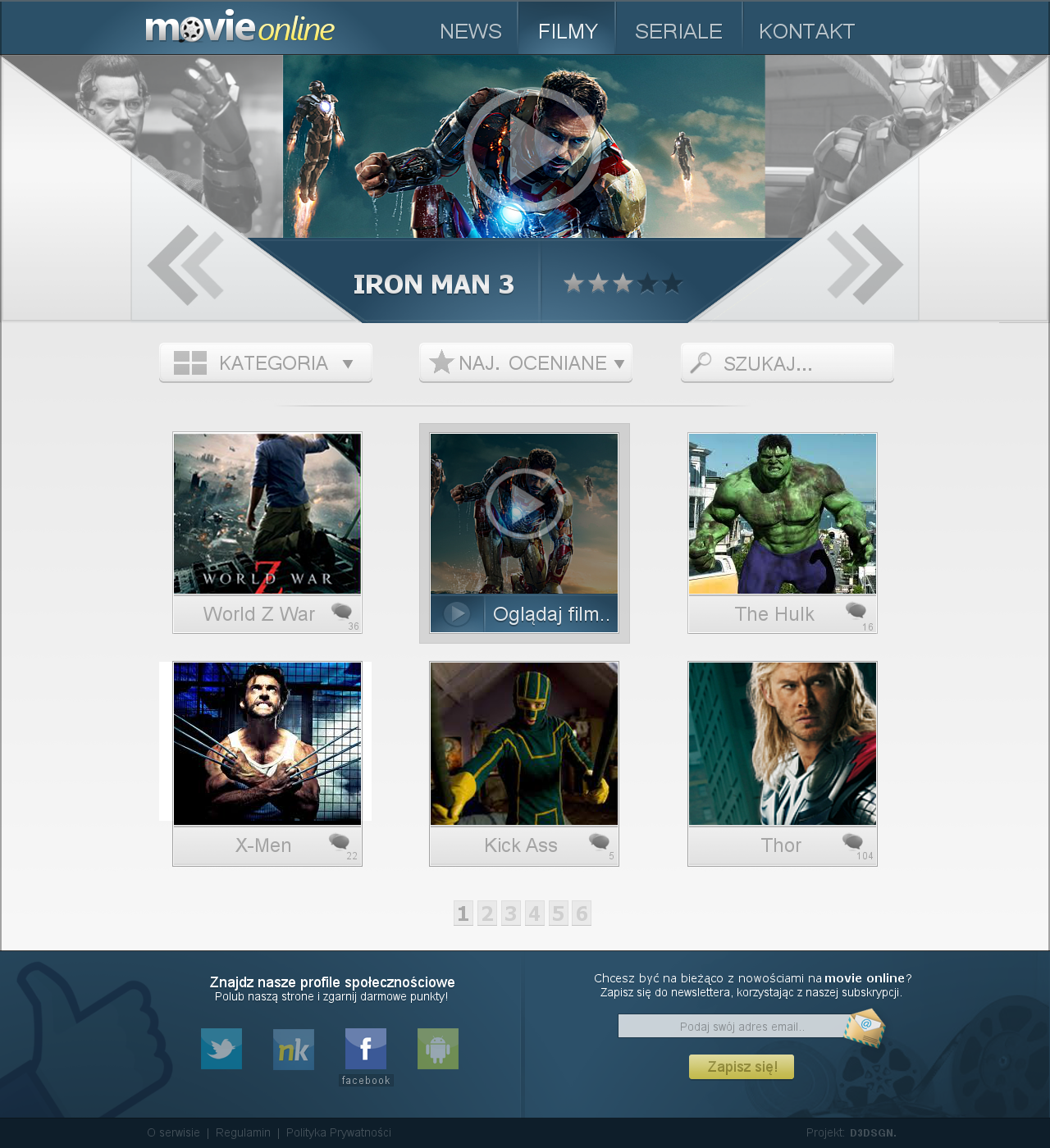 Movie Online - Projekt strony internetowej umożliwiającej oglądanie filmów w sieci. Kilka ładnych godzin pracy i ponad 120 warstw. Ogółem jestem zadowolony z efektu, dawno nic nie robiłem więc dobre i to. Trochę pusto ale miała to być taka mała stronka.