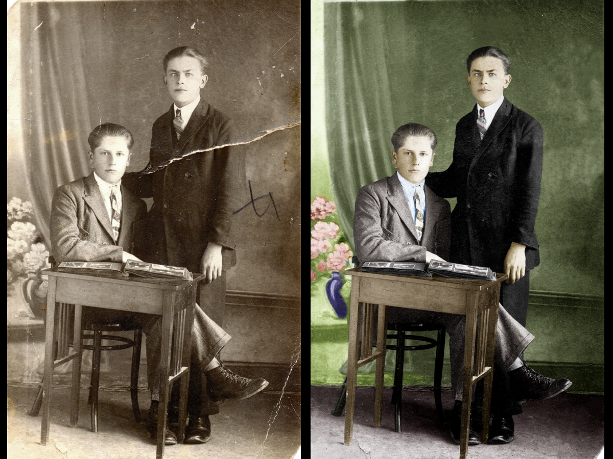 Chciałbym tą skromną pracą, przywitać grzecznie wszystkich użytkowników. Mam na imię Piotr. Stara fotografia, którą pozwoliłem sobie nieco odnowić i pokolorować, pochodzi z 1936 roku.Ten siedzący młodzieniec, to mój dziadek. Dziadek - góral,człowiek prosty,ale z zasadami... | Statystyki obrazu: