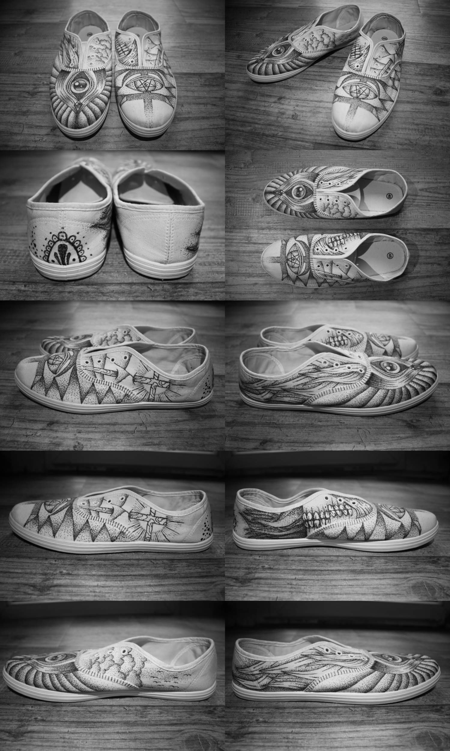 @Sick94 Tak ze 3 dni na buta bo po prostu nie chciałem przesadzać. Po kilka godzin, za bardzo nie zwracałem uwagi ile dokładnie. Ręka czasem boli, tym bardziej, że na butach trochę trudniej się robi niż na kartce czy w komputerze. Ale nie spodziewałem się tak ciekawe efektu  . Na pewno zrobię jeszcze jakieś.