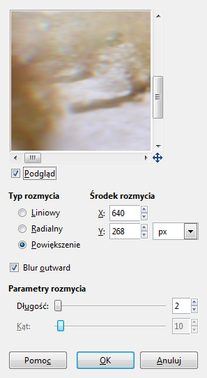 Filtry -> Rozmycie -> Rozmycie "w ruchu". Wybieramy